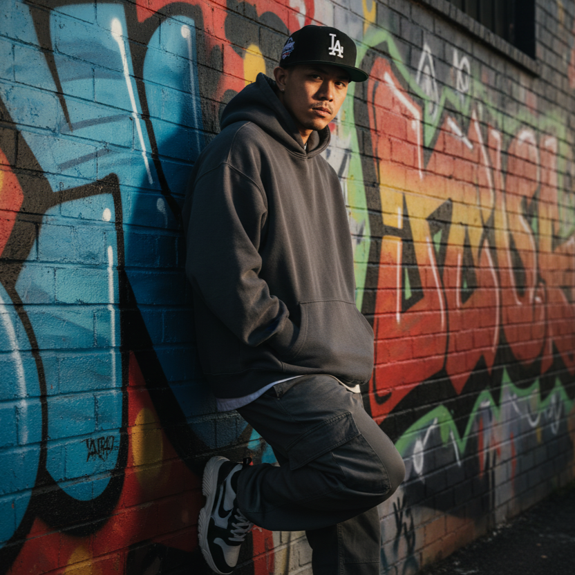 Color: Monochromatic black crown and brim with a bold white embroidered 'LA' logo.